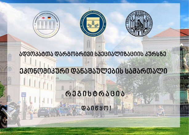 მიუნხენის ლუდვიგ მაქსიმილიანის უნივერსიტეტის საადვოკატო სამართლის ინსტიტუტთან (Institut für Anwaltsrecht an der LMU) და გერმანულ-ქართული სამართლის ინსტიტუტთან თანამშრომლობის ფარგლებში, ცხადდება რეგისტრაცია დარგობრივი სპეციალიზაციის კურსზე - ეკონომიკური დანაშაულების სამართალი.