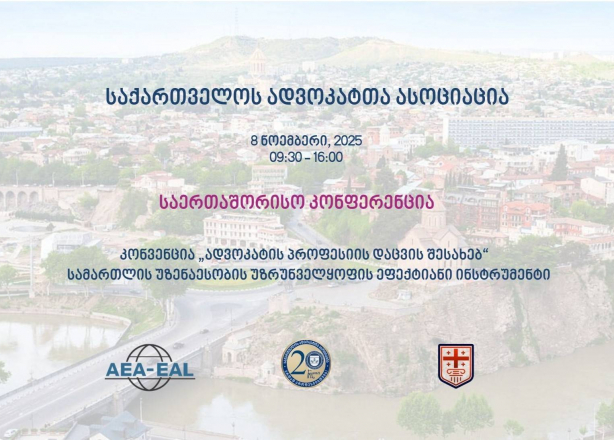 ადვოკატის დღისა და საქართველოს ადვოკატთა ასოციაციის დაარსებიდან 20 წლის აღსანიშნავად, 08 ნოემბერს, საერთაშორისო კონფერენცია გაიმართება.