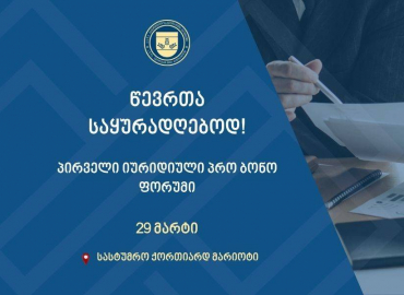 როგორც თქვენთვის ცნობილია, 29 მარტს 11:00 - 16:00 საათამდე, ასოციაციის სოციალური პასუხისმგებლობის ფარგლებში, სასტუმრო ქორთიარდ მარიოტში პირველი იურიდიული პრო ბონო ფორუმი გაიმართება. ვრცლად