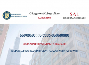 ჩიკაგო-კენტის ამერიკული სამართლის სკოლა, საქართველოს ადვოკატთა ასოციაციასთან გაფორმებული ურთიერთთანამშრომლობის ფარგლებში, ასოციაციის წევრებს სთავაზობს სწავლას ამერიკულ სამართლის სკოლაში 15%-იანი ფასდა... ვრცლად
